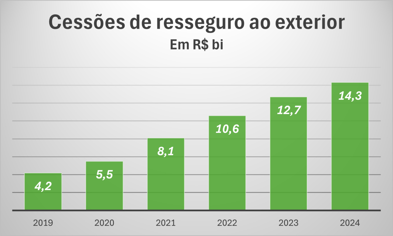 Trata-se de uma intenção que vai na direção oposta à que o mercado tem tomado nos últimos tempos. Desde a pandemia de Covid-19, as cessões ao resseguro internacional mais do que triplicaram no Brasil (ver gráfico acima).